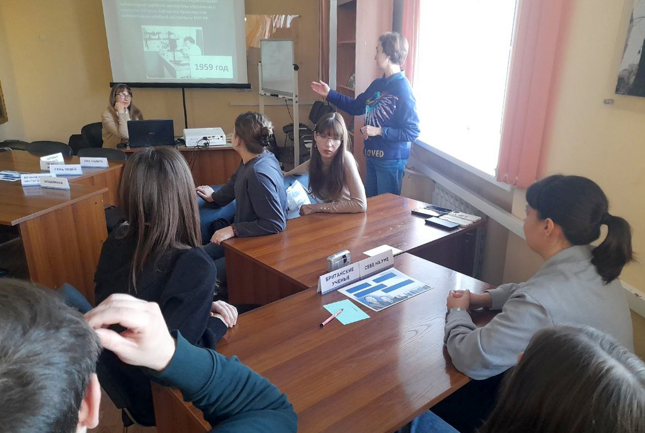 15 октября в отделе читальных залов прошла интеллектуальная игра «Красноярская наука в биографиях». Студенты-криминалисты 4 курса СибЮИ МВД России ловко справлялись с заданиями. Их эрудиция и логическое мышление помогали находить ответы на сложные вопросы. Иногда мы намеренно запутывали участников, но с юмором и легкими подсказками они уверенно приближались к финалу и отгадали цитату известного красноярского ученого И. И. Гительзона о науке.