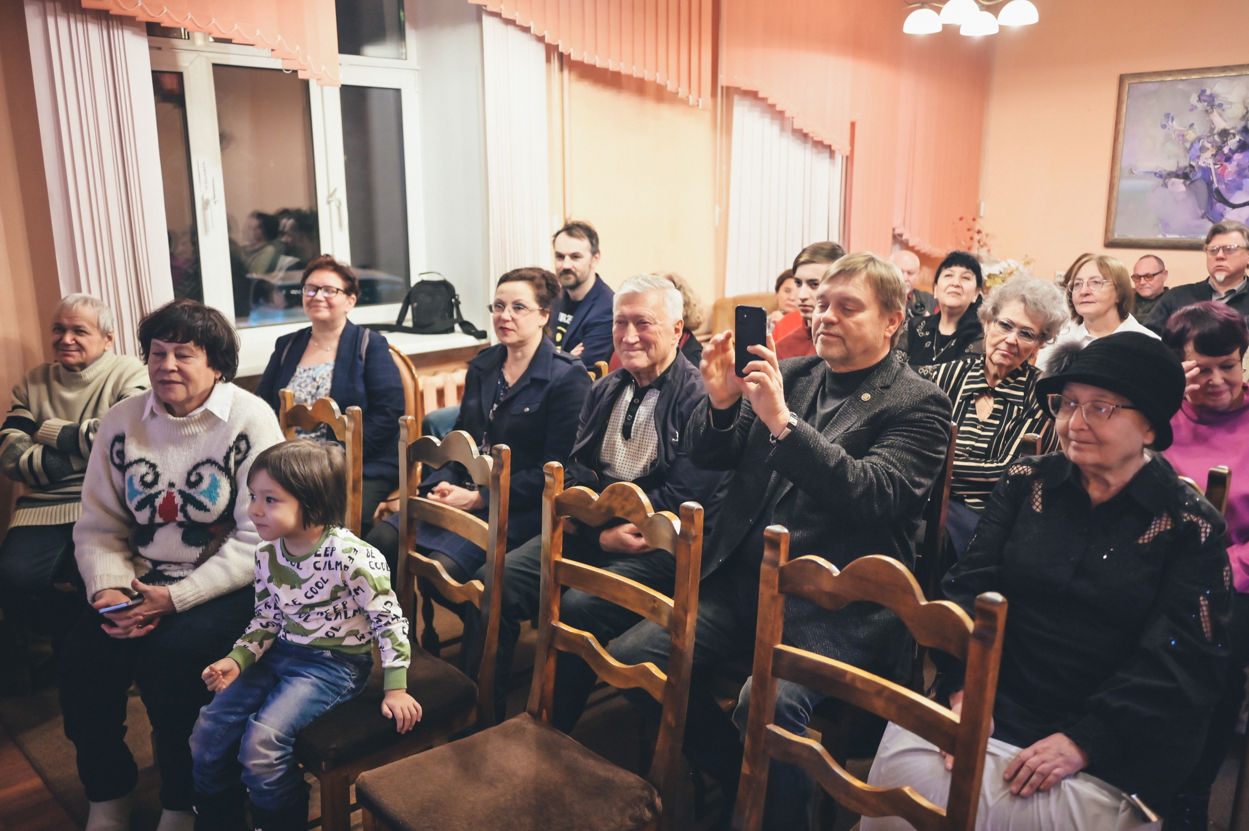 На открытии выставки собрались родные и друзья художника. Воспоминаниями о Викторе Бахтине, восприятием его творчества поделились: директор издательства «Растр» Юрий Алексеевич Кирюшин, народный художник РФ, академик Российской академии художеств Герман Суфадинович Паштов; директор Института киноиндустрии СФУ Василий Владимирович Нелюбин; кандидат биологических наук, заведующий естественнонаучным отделом Красноярского краевого краеведческого музея Игорь Кондратьевич Гаврилов; искусствовед Елена Юльевна Безызвестных; профессор СФУ, художник Олег Константинович Ампилогов; исследователь творчества Виктора Бахтина, руководитель клуба любителей фантастики «Вечные паруса» Михаил Викторович Гончарук.
