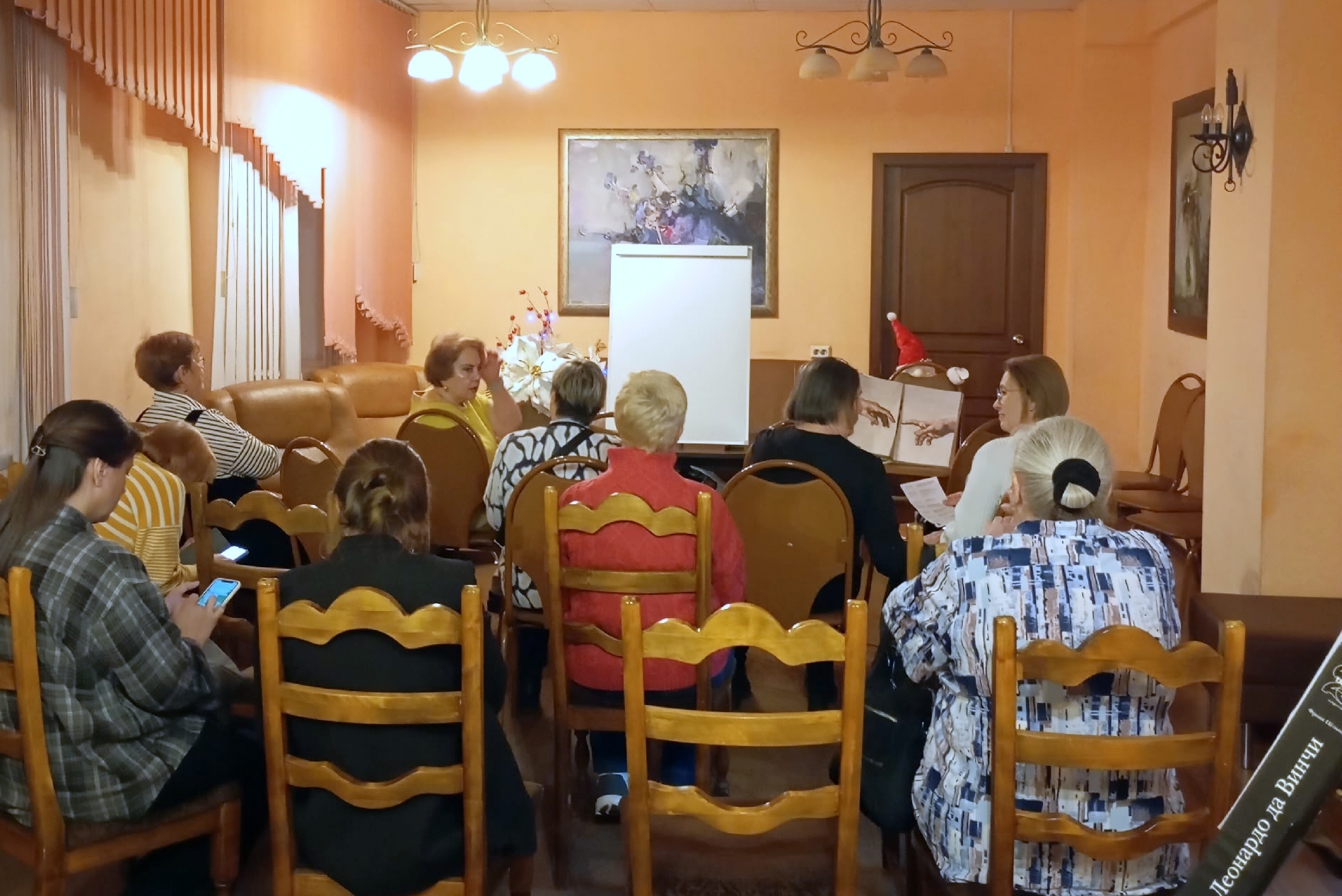 В клубе «Женское мнение» состоялась предновогодняя встреча на тему «Живопись и хиромантия: рука как символ в искусстве». Гостям предложили изучить репродукции картин известных художников, которые часто использовали руки для передачи чувств и эмоций. Также участники смогли узнать, с чем у них ассоциируется рисунок на их ладони и что он может означать.