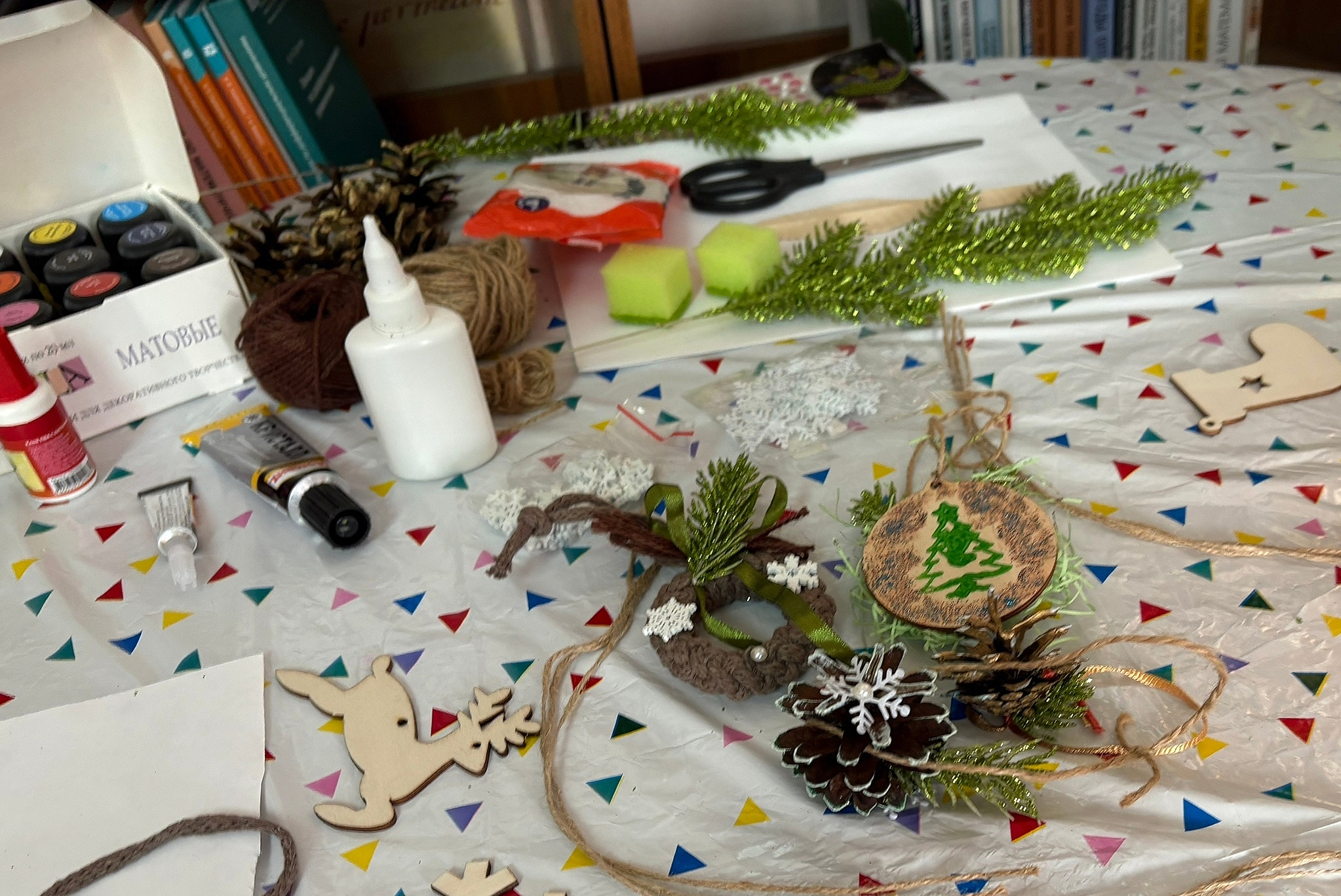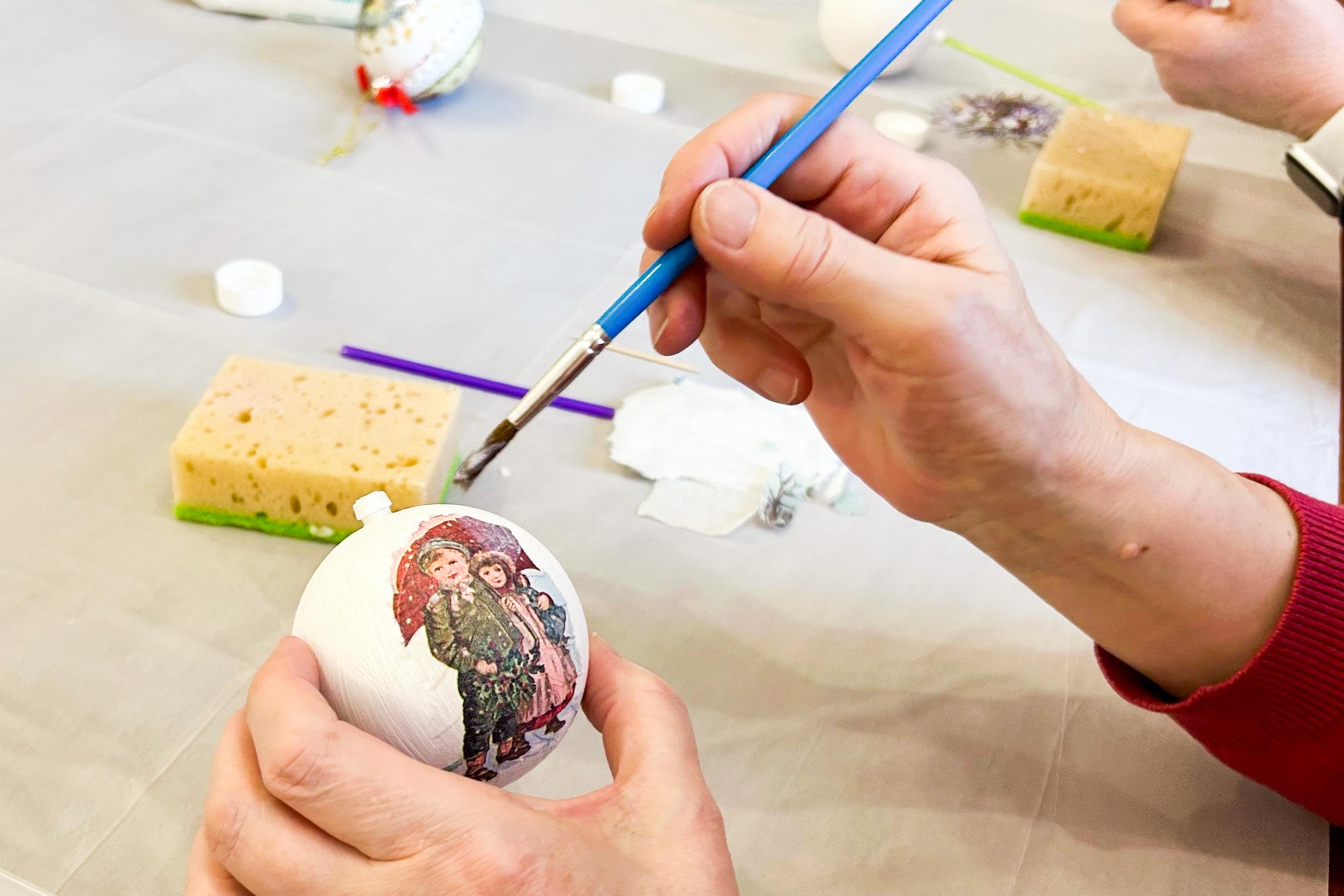 В отделе литературы на языках народов мира прошли мастер-классы по созданию ёлочного шара в ретро-стиле в технике декупажа. Под традиционную новогоднюю музыку участники работали с салфетками и декупажными картами, дополняли композиции росписью, кружевом, жемчугом и лентами. Каждый унёс с собой не просто украшение, а частичку праздничного чуда.