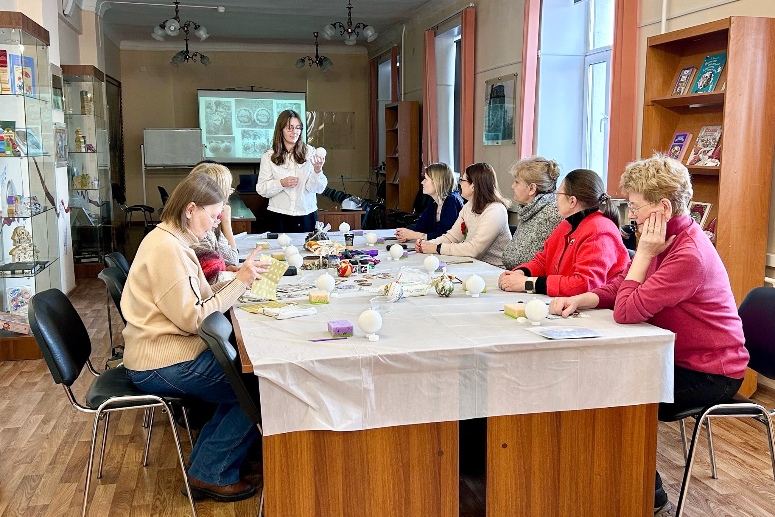 Новый год — время фантазии и рукоделия. Отдел читальных залов подготовил серию мастер-классов по созданию новогодних украшений: объёмных снежинок и ёлочных игрушек. Участники узнали историю появления Деда Мороза и Снегурочки, создавали из бумаги изящные снежинки и сверкающие ёлочные шары.