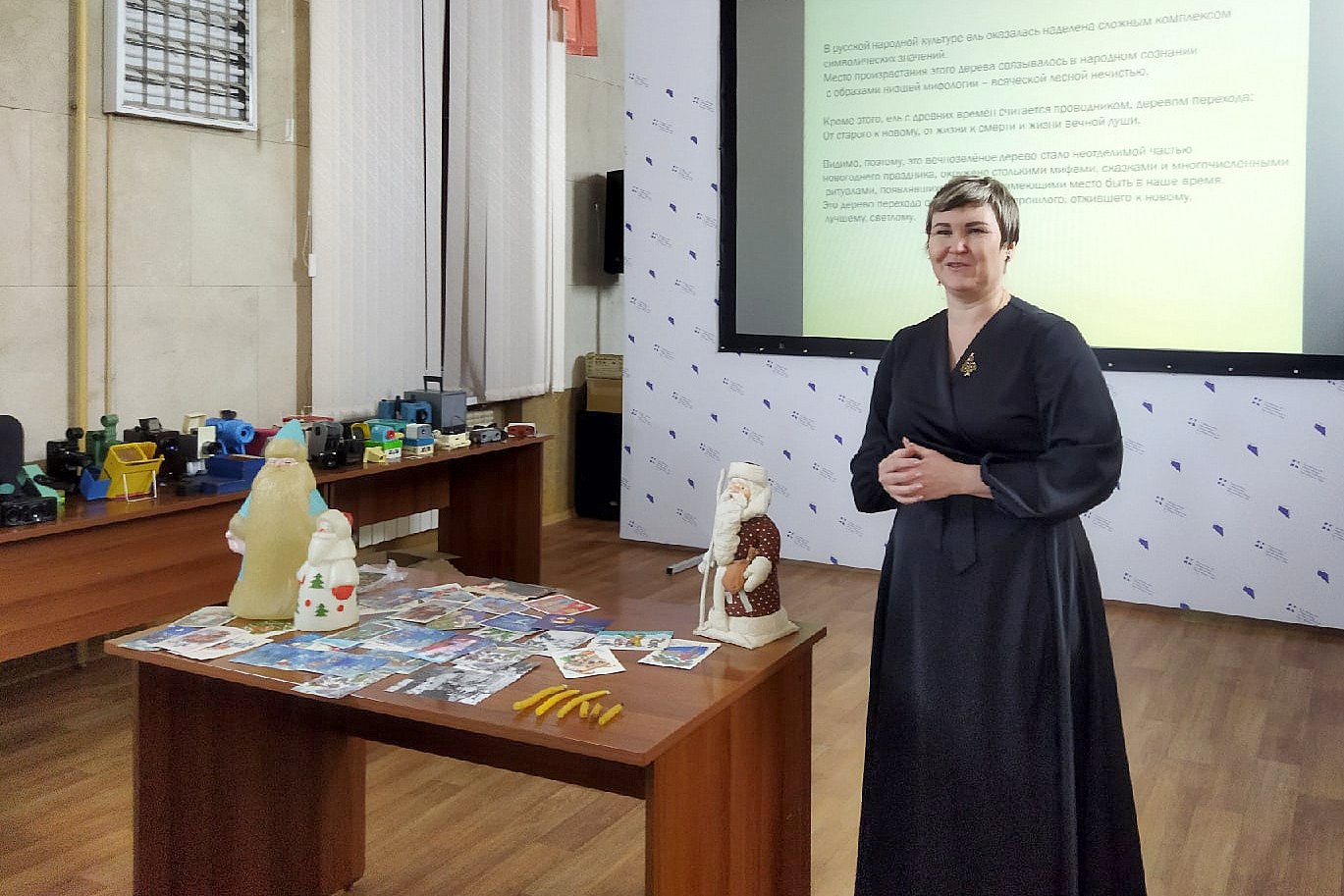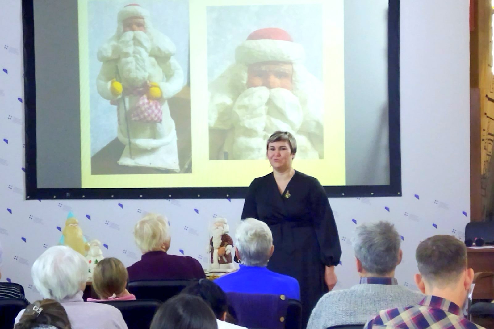 Мастер рассказала о том, как на протяжении многих лет собирала Дедов Морозов. Коллекция обширна и охватывает игрушки с 80-х годов XX века заканчивая современными. Гости узнали историю появления персонажа Дед Мороз, секреты возникновения Снегурочки и разные версии, которые существуют на этот счет.