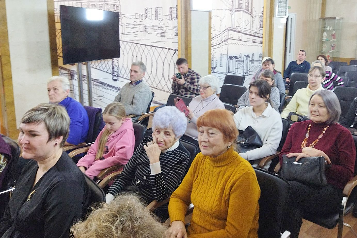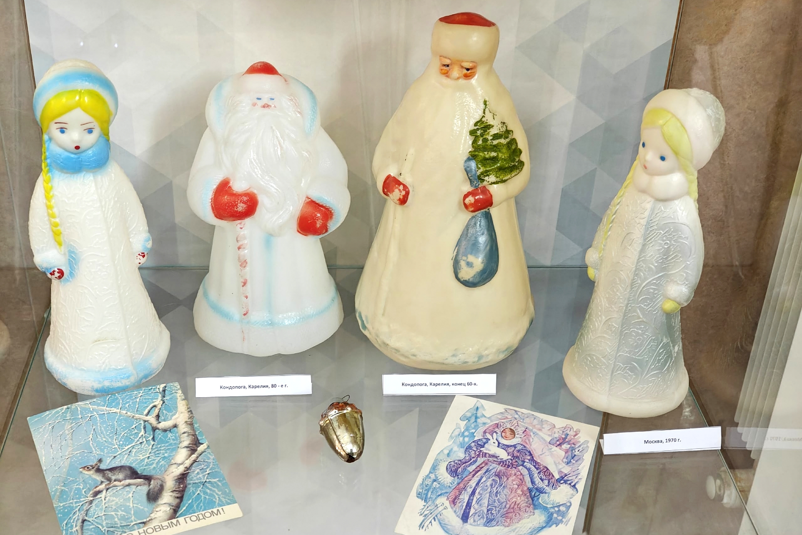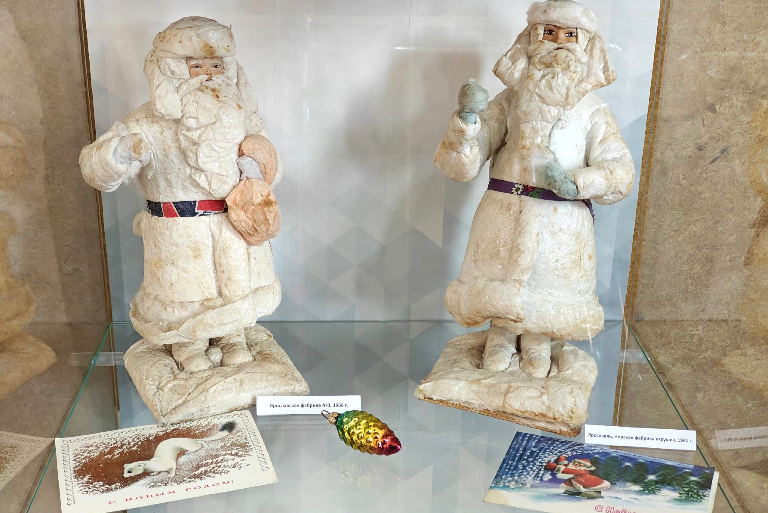 Встреча проходила в зале, где в витринах были представлены Деды Морозы и Снегурочки из коллекции Е. В. Найденовой.