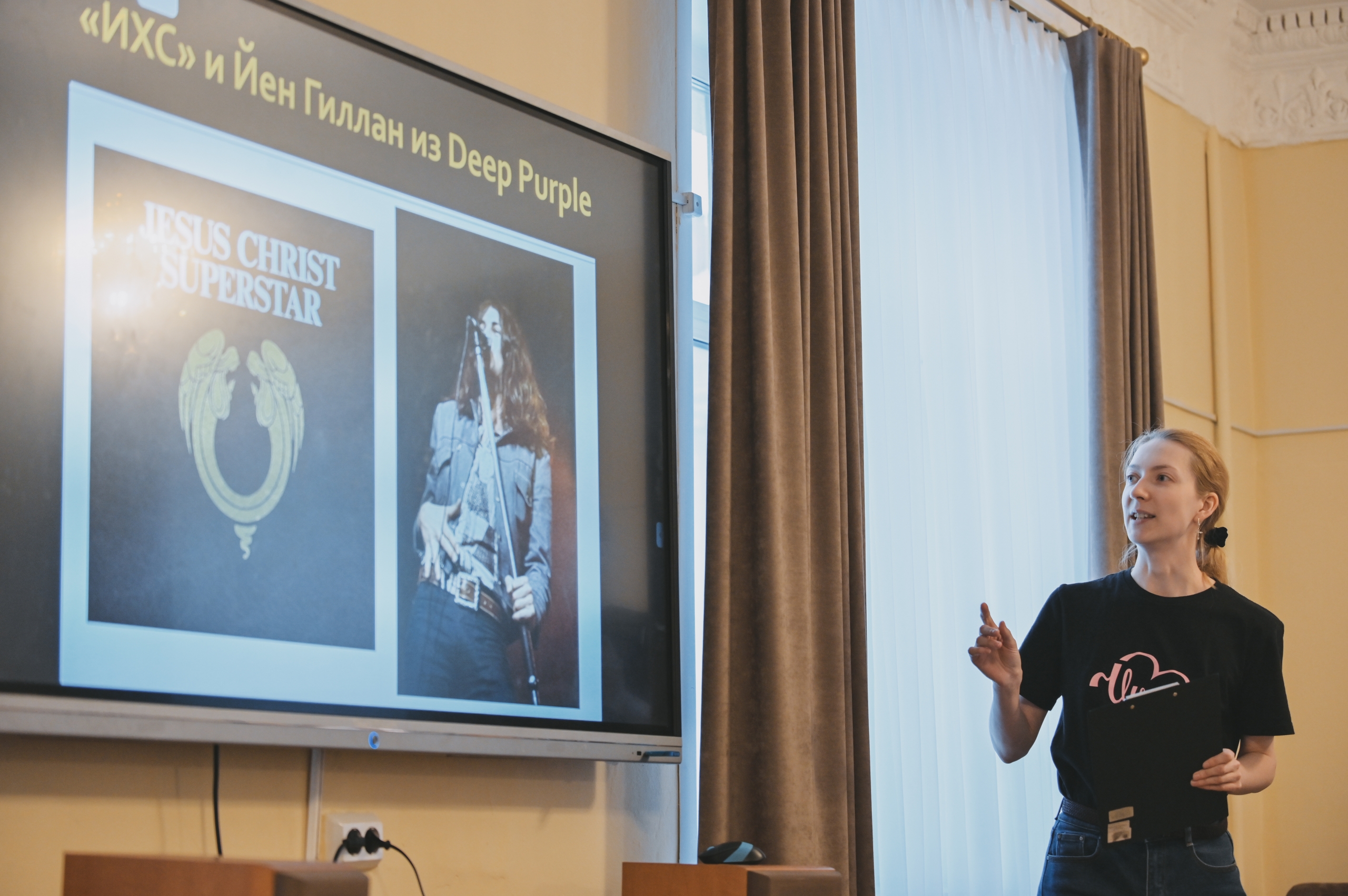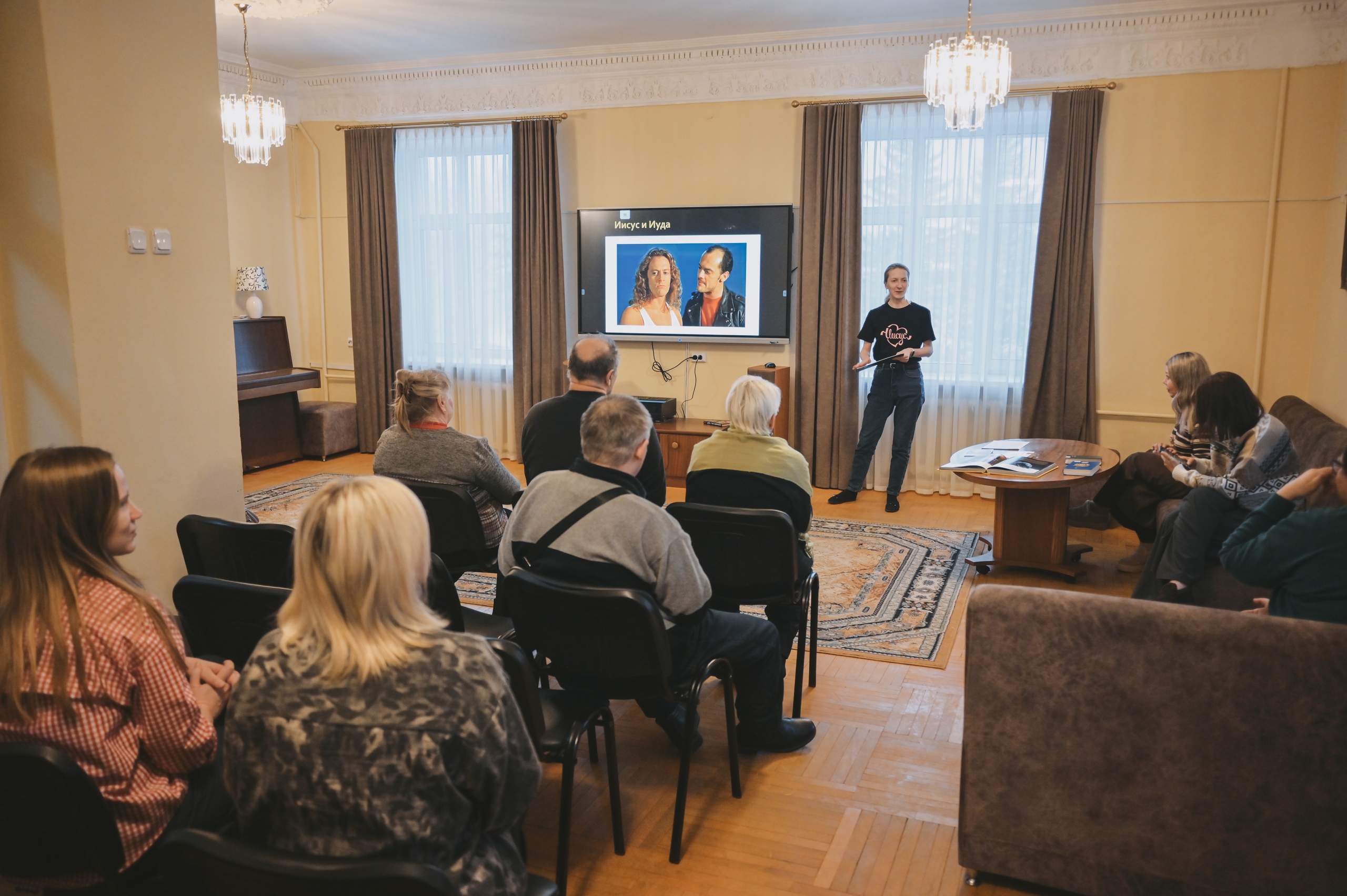 Как всегда, было много юмора, но на этот раз и серьёзные обсуждения: смеялись над выбором костюмов и декораций в некоторых экранизациях, обсуждали посыл авторов рок-оперы и приведённые лектором цитаты представителей Церкви, которые допускают её показ: «Нельзя запретить художнику черпать вдохновение в Священном Писании».