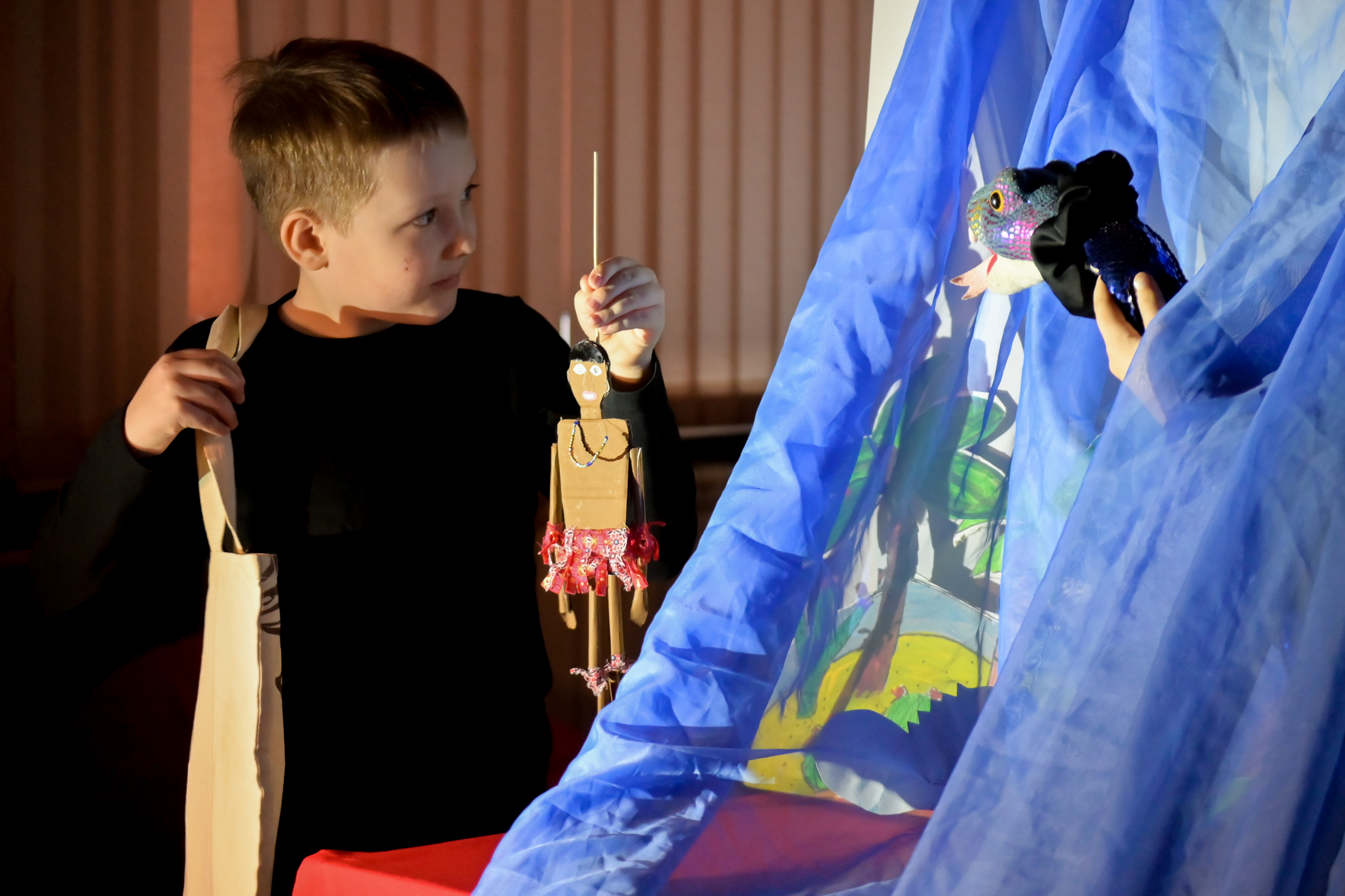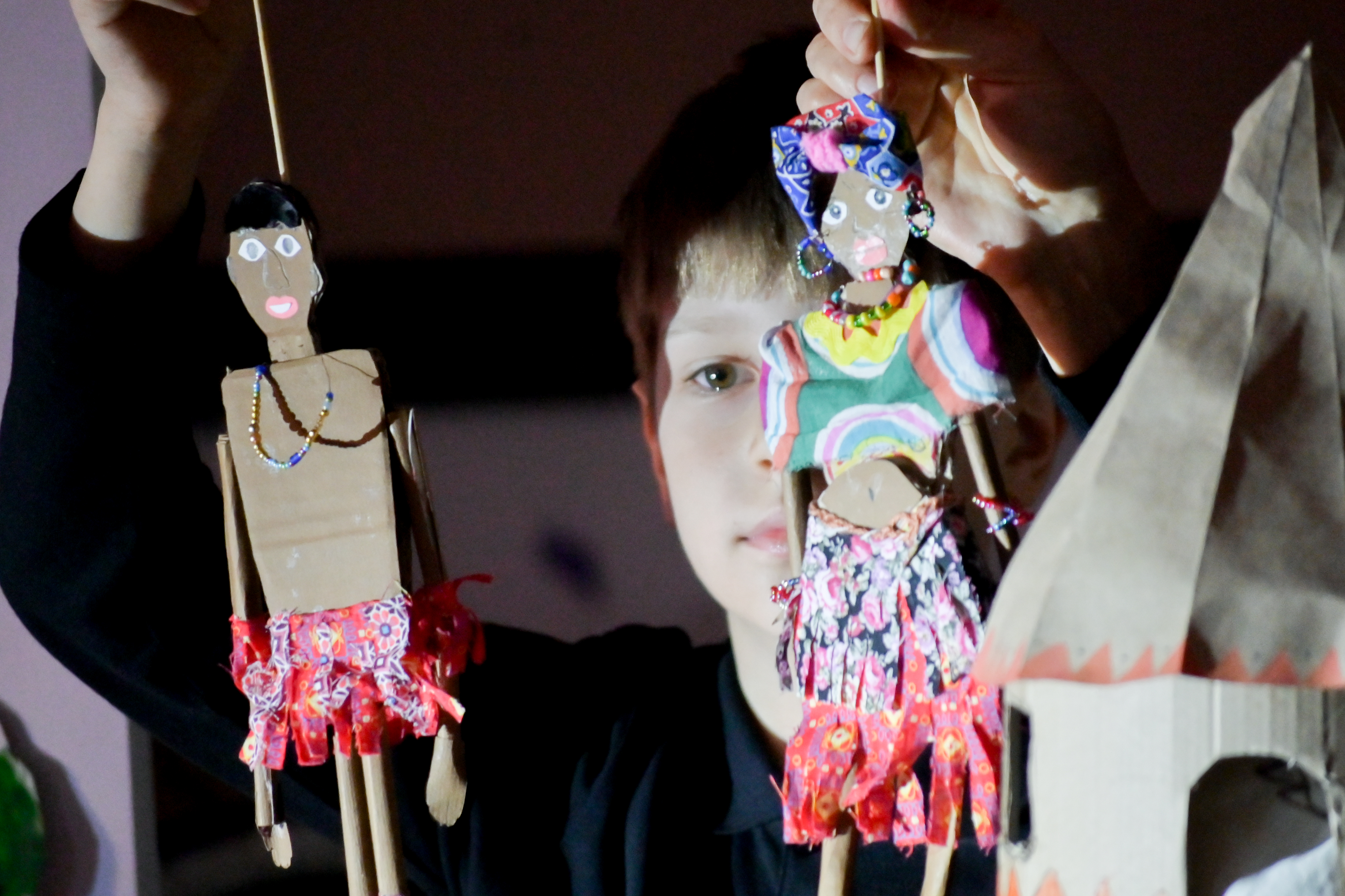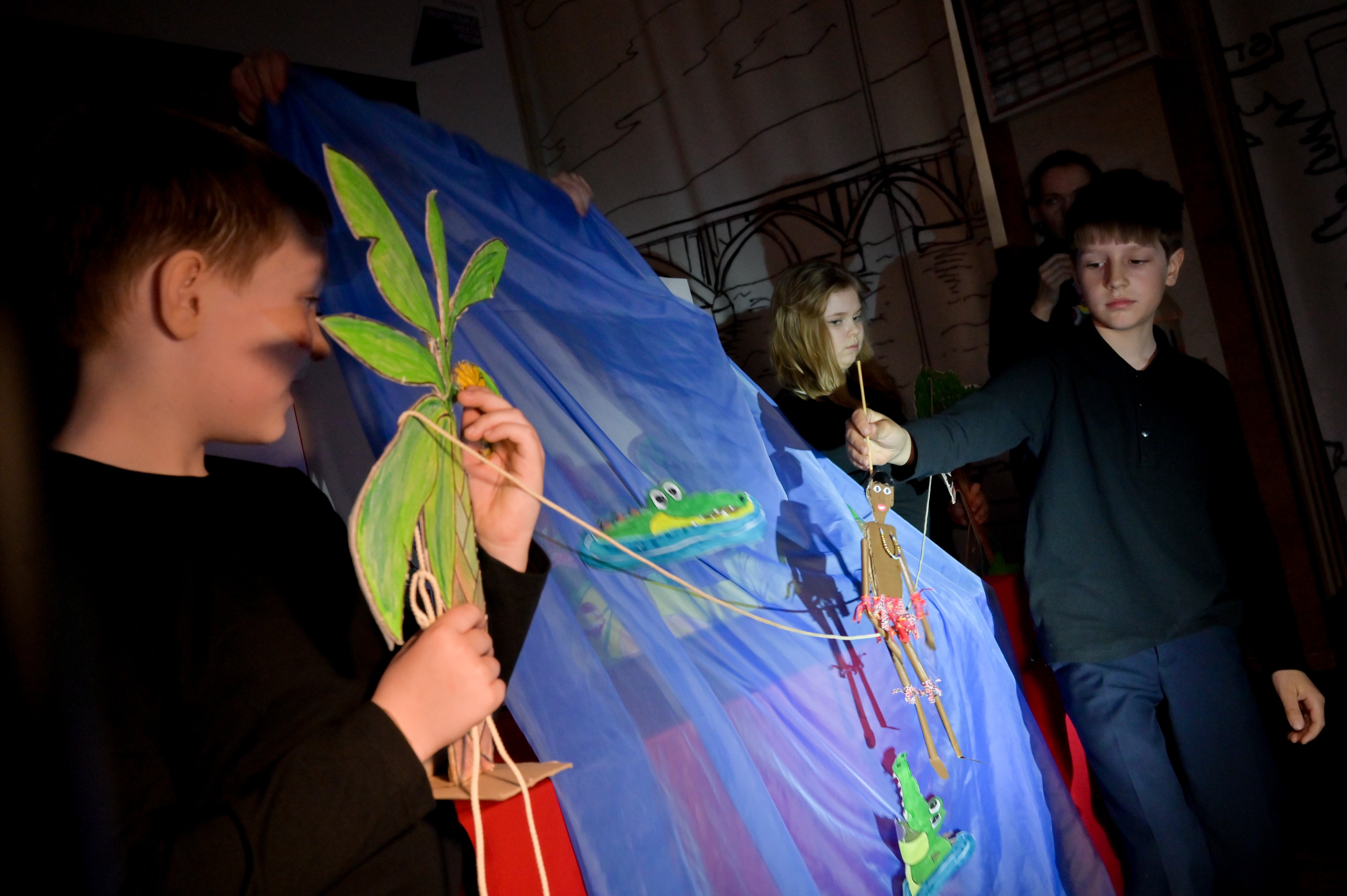 После спектакля можно было заглянуть за кулисы и увидеть, как создаётся магия при помощи тени, света и картонных фигурок. Ну и, конечно же, можно было поиграть на инструментах импровизированного театрального оркестра. Зрители могли убедиться в том, что в театре всё устроено достаточно просто, и они сами могут ставить такие семейные спектакли дома.