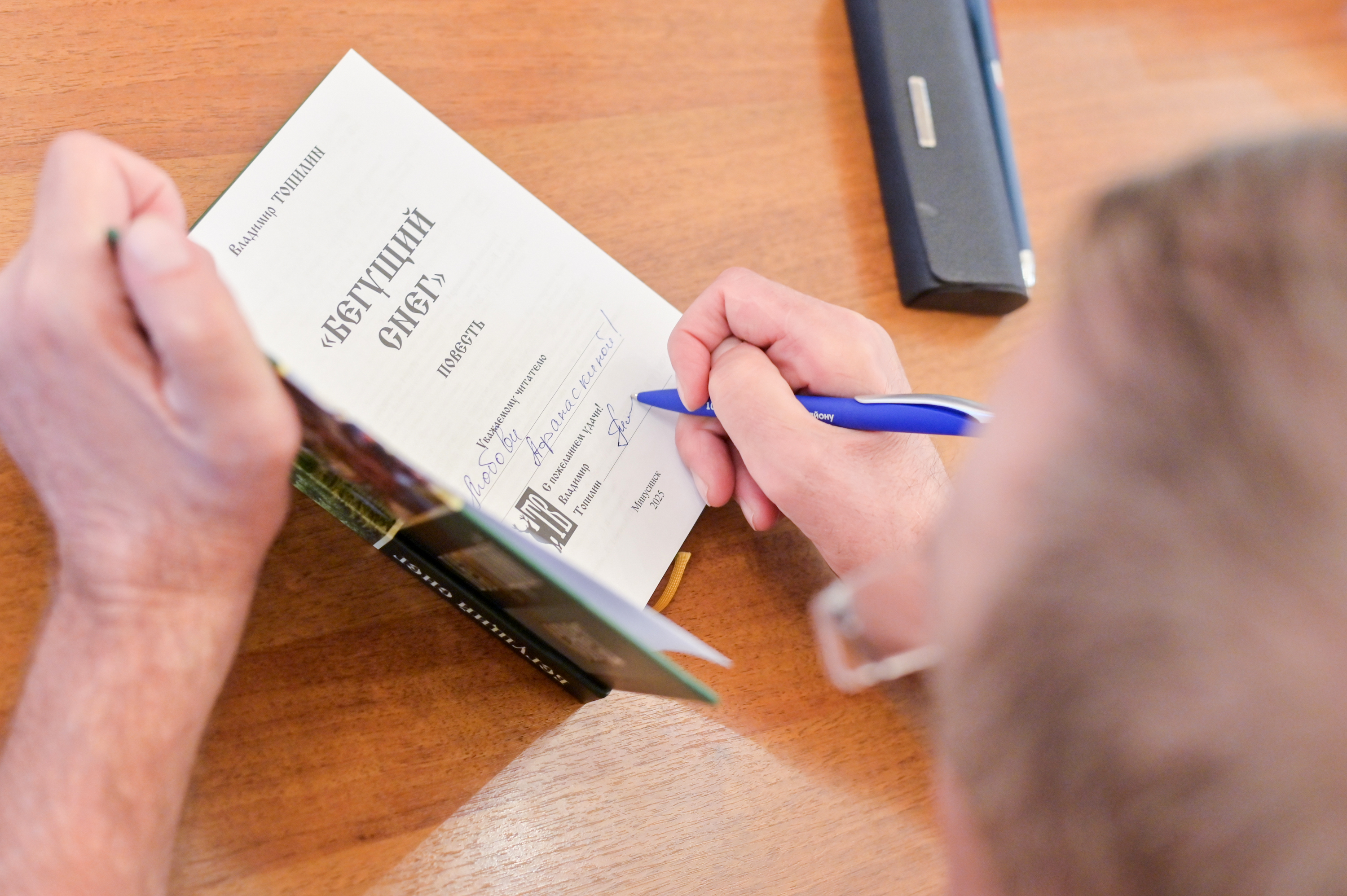 В завершении встречи Владимир Степанович подписал и передал книги бойцам СВО, находящимся на лечении в Гарнизонном военном госпитале.