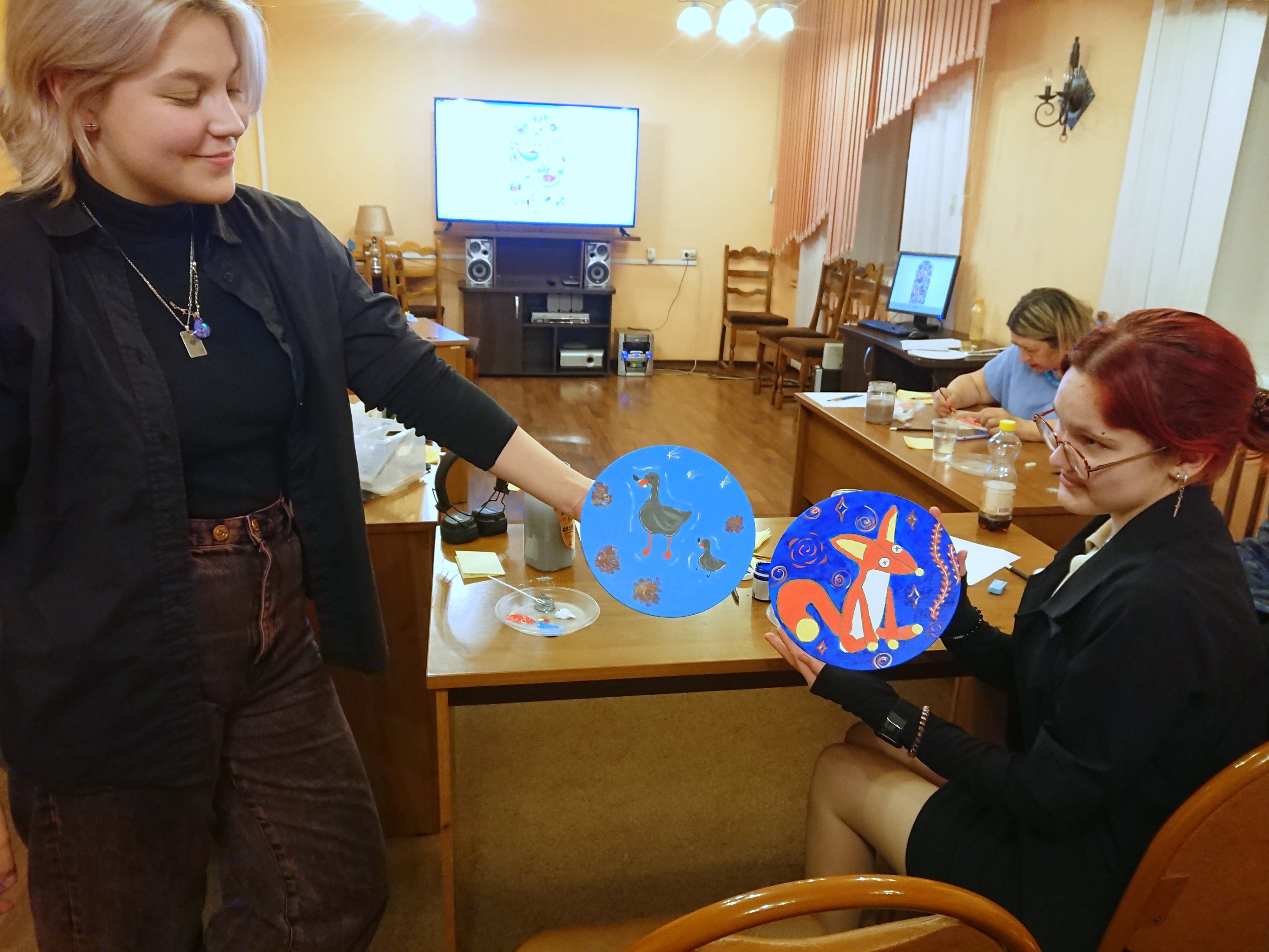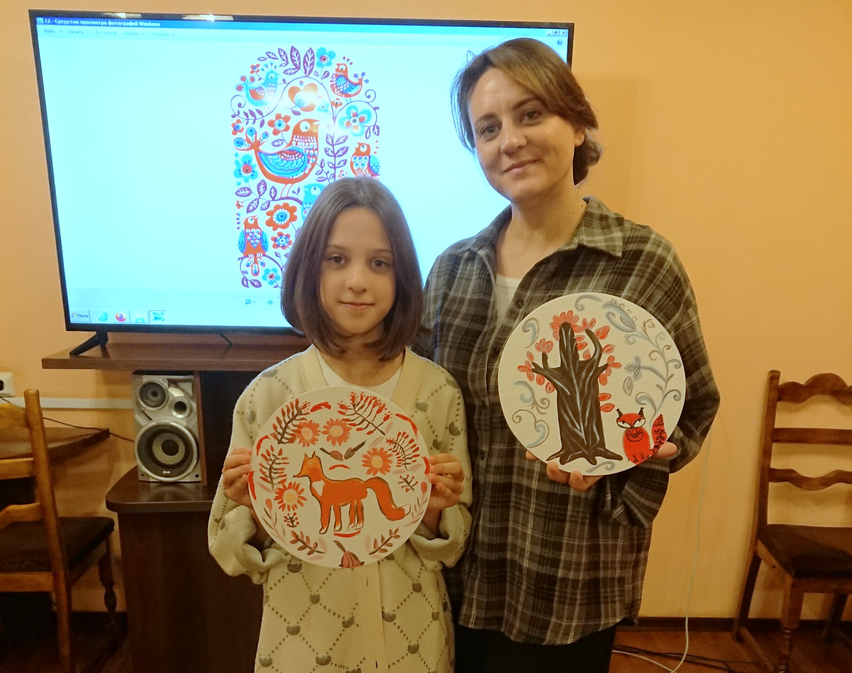На этот раз собравшиеся вдохновлялись волшебством Гжели, Мезеня, восточноевропейскими фольклорными традициями. В начале работы участники выполнили несколько эскизов, зарисовок, элементов традиционных росписей, а затем приступили к работе на холсте. Выбрав главным героем своей картины птиц, животных, цветы, насекомых, сказочных героев, создали собственные произведения и ушли радостные и с чудесным настроением!