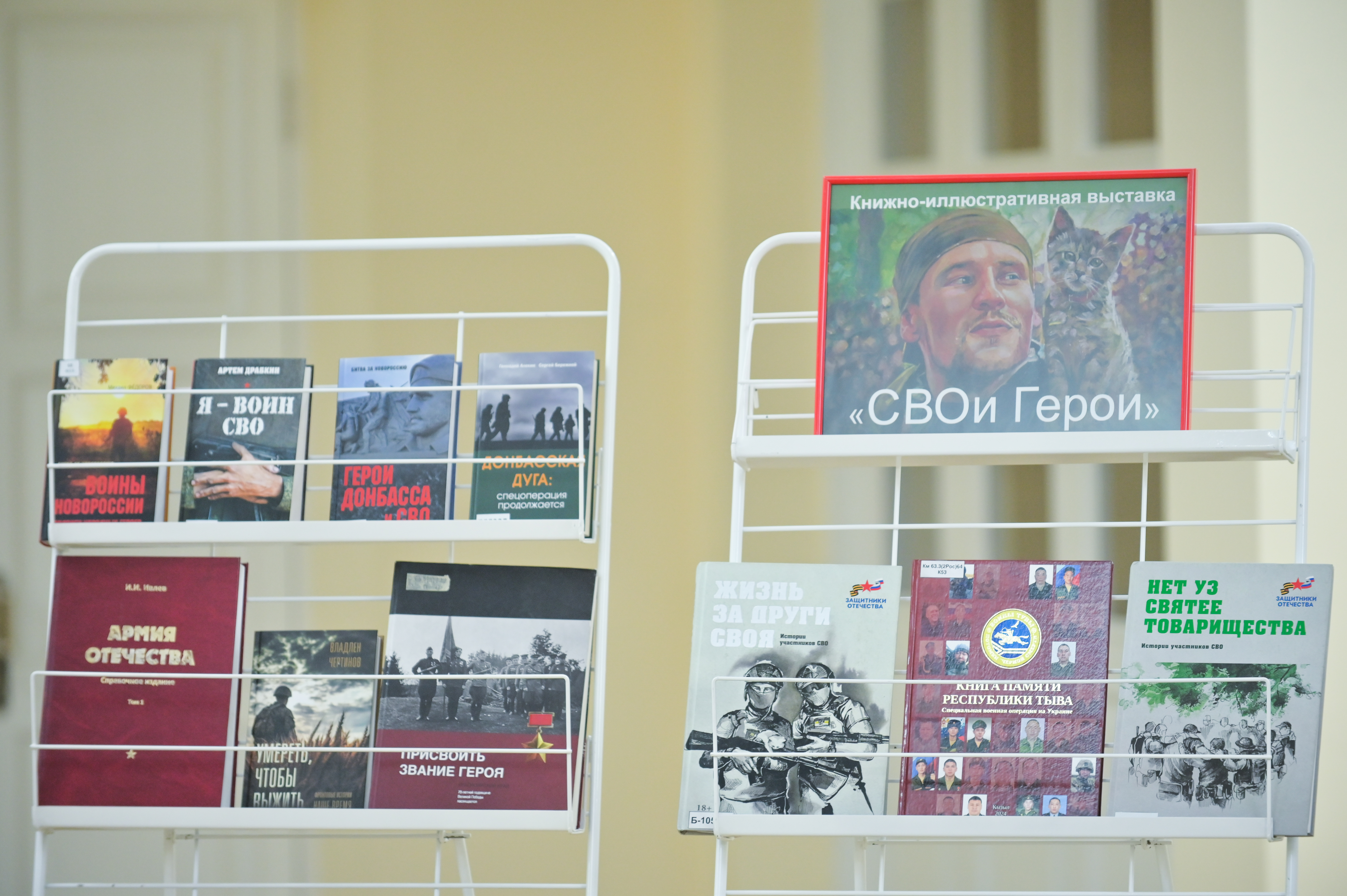 На выставке «Героям России посвящается» была собрана литература об истории и подвиге российской армии, о великих русских полководцах и адмиралах, сражениях на море и на суше. Экспозиция «СВОи Герои» объединила книги, статьи, сборники рассказов, очерки и воспоминания о современных героях, защищающих интересы России. в том числе, красноярские издания, посвященные специальной военной операции. Также была представлена галерея портретов Героев России, уроженцев Красноярского края, участвующих в СВО.