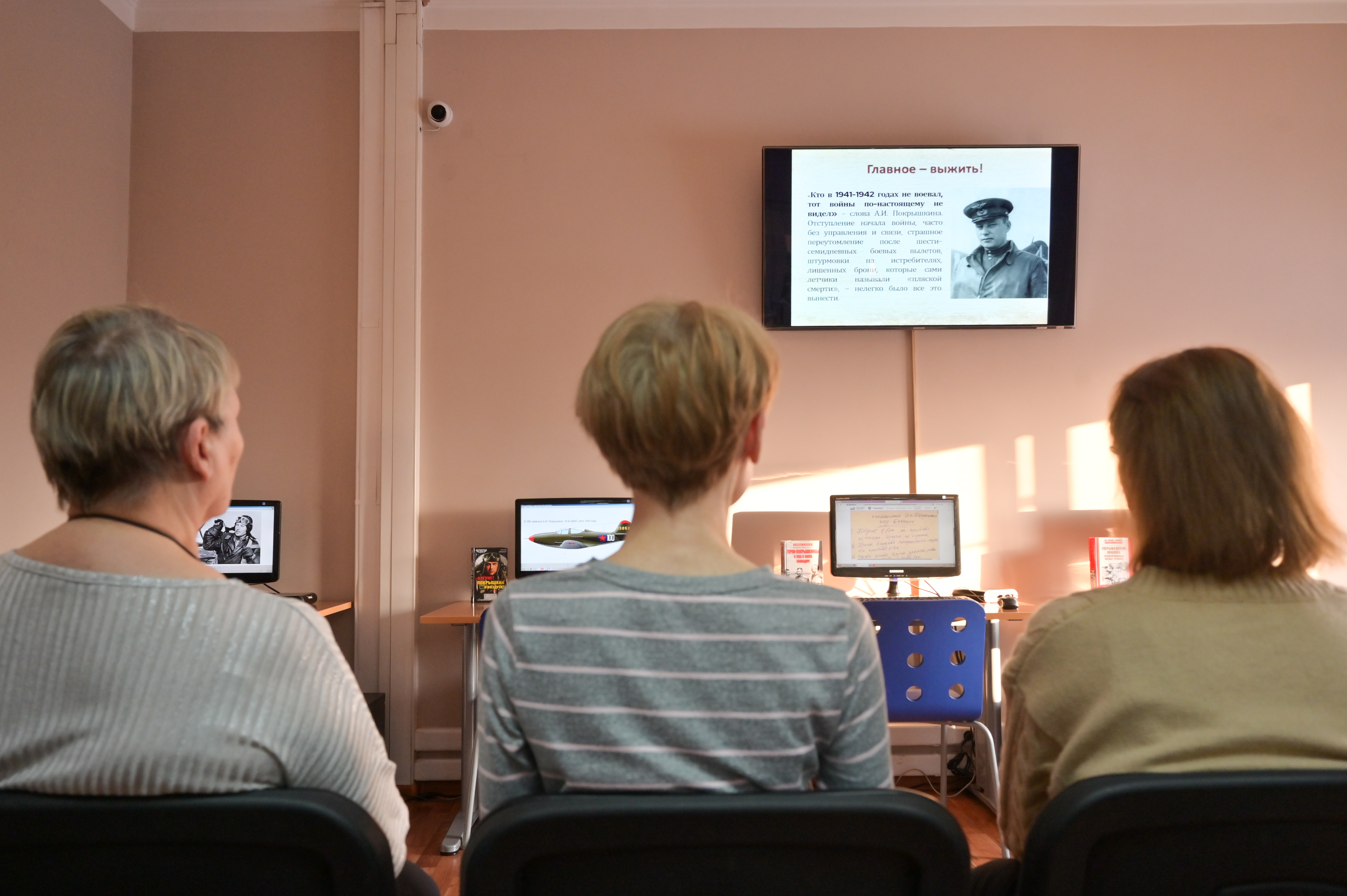 В ходе часа истории «Русский герой Александр Покрышкин» посетители познакомились с электронной коллекцией Президентской библиотеки «Покрышкин Александр Иванович (1913-1985)», посмотрели документальный фильм «Неизвестный Покрышкин».