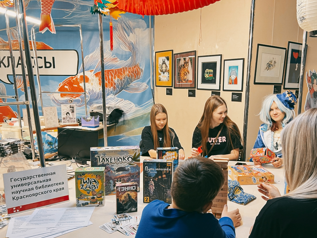Особую атмосферу фестиваля помогла создать Краевая научная библиотека. Наши библиотекари привезли из библиотечного фонда коллекцию традиционных японских настольных игр — именно в них с увлечением играли участники фестиваля.