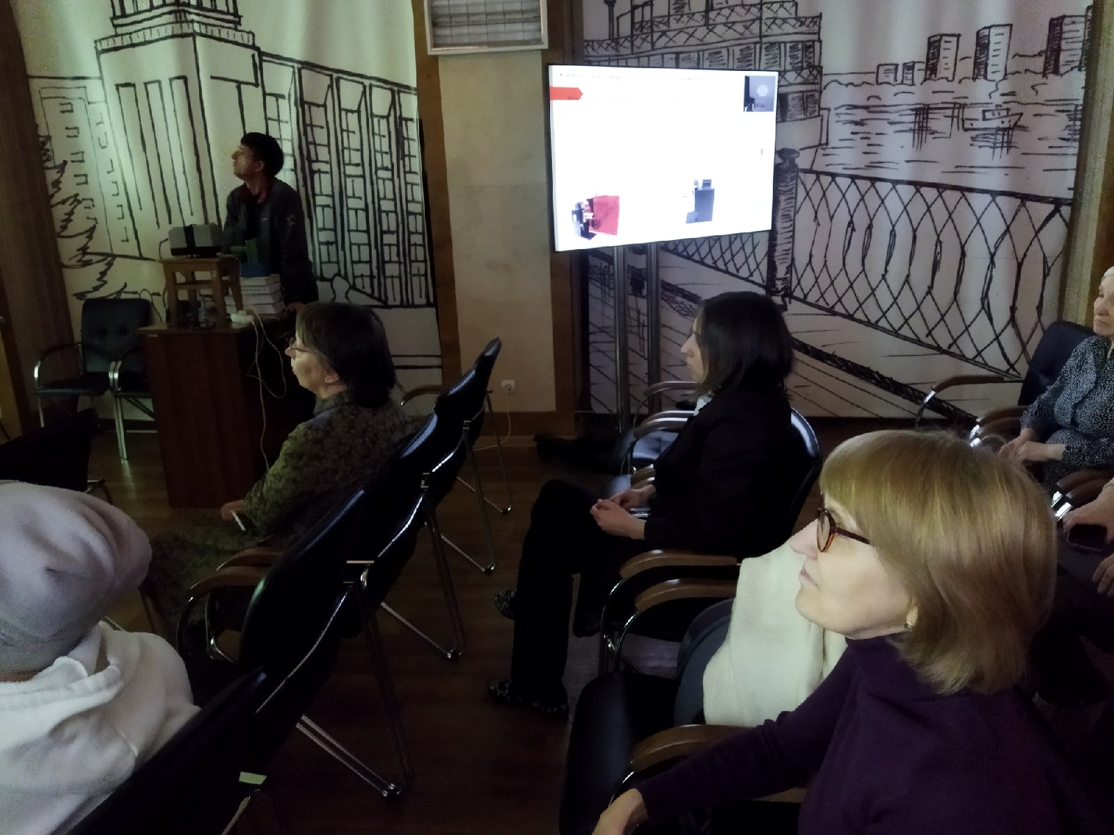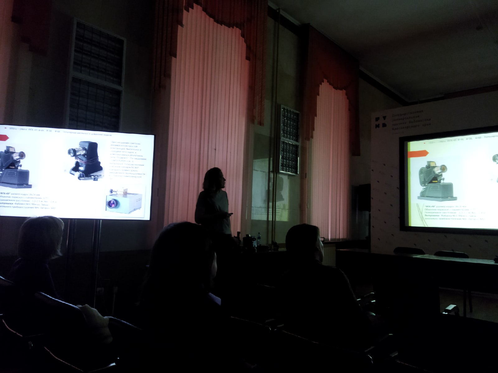 Ирина погрузила гостей в историю фильмоскопов, сопроводив рассказ информативной и яркой презентацией. Присутствующие узнали, как выглядели диапроекторы советского времени, какие особенности были у того или иного аппарата (сильный нагрев корпуса, перегорающие лампы, часто теряющиеся в советских семьях детали для перемотки плёнки и много других любопытных аспектов).