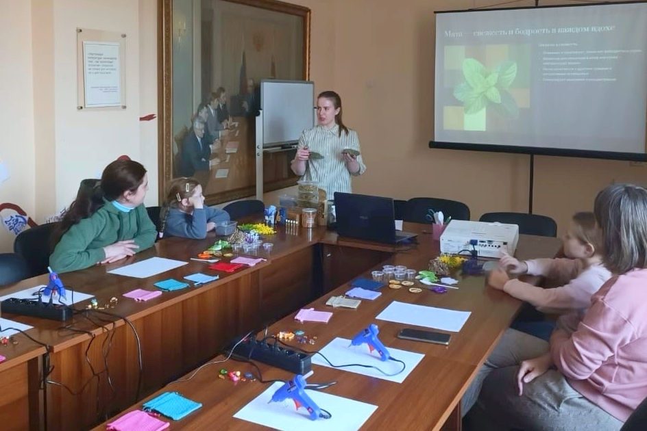 В начале встречи гости познакомились с полезными свойствами ароматных трав и узнали, как можно превратить простой льняной мешочек в нарядное праздничное украшение. Затем каждый выбрал понравившиеся материалы и приступил к декору: с помощью клеевого пистолета, пайеток, природных материалов и лент семьи создавали неповторимые композиции. Творческий процесс прошёл в атмосфере взаимопомощи и радости – дети увлечённо придумывали дизайн, а родители помогали воплощать даже самые сложные идеи.