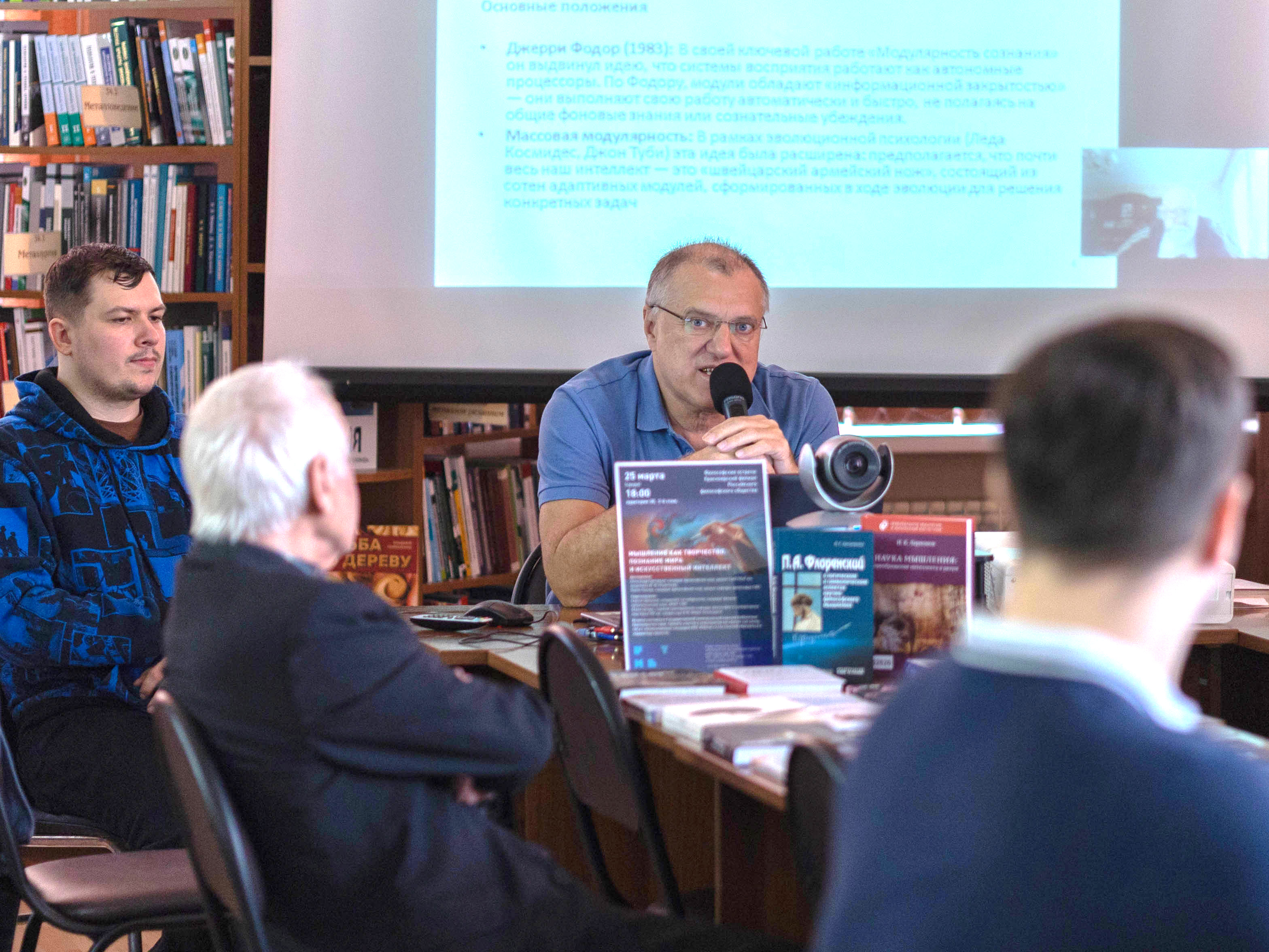 Философский дискуссионный клуб Красноярского отделения Российского философского общества продолжает свою работу. В марте 2026 года в библиотеке состоялась очередная философская встреча: «Мышление как творчество. Познание мира и искусственный интеллект».