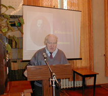 Тему продолжил внук библиофила А.Л. Юдин (г. Красноярск). Он рассказал о раритетах семьи Юдина, переданных в музей внуком, доктором наук, профессором К.А. Юдиным и другими потомками, вспомнил о коллекции икон своей матери, за которые музей даже заплатил. И наконец, предложил обратиться к руководящим работникам края, чтобы они по примеру губернатора Красноярского края А.И. Лебедя помогли музею финансами в восстановлении Юдинской дачи на Афонтовой горе. Правнучка Юдина И.А. Мюрисепп из Таллинна интересно поведала об эстонской линии потомков Юдина. Ее предки по отцовской линии еще в 1910 г. выехали с острова Саарема и обосновались в Красноярске. Мама Иды унаследовала от деда-библиофила любовь к книге, работала в Центральной библиотеке им. Горького г. Красноярска. В 1952 г. семья переселилась в Таллинн. Сейчас за границей проживает много потомков красноярского библиофила.