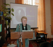 Зав. Красноярским литературным музеем А.В. Броднева очень подробно и интересно осветила тему «Художник Н.А. Степанов и его рисунки в фонде Г.В. Юдина». Материалы о Юдине-издателе прозвучали в сообщении краеведа С.Э. Бакулина, а о Юдине-собирателе фольклора – в сообщении аспирантки Новосибирской государственной консерватории О.В. Крахалевой.
